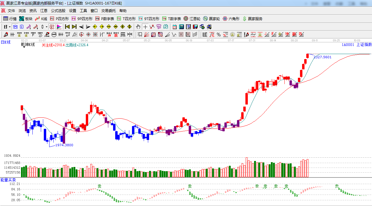 ★依據贏家江恩系統(tǒng)能量買賣提示:紅色能量柱子,看多。