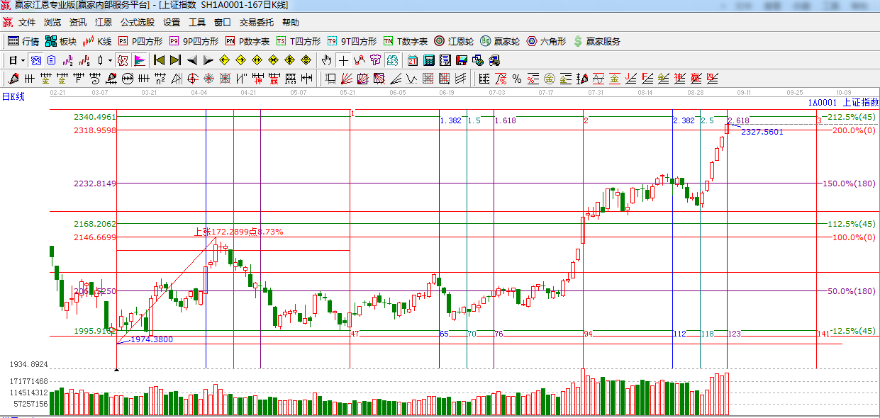 ☆依據贏家江恩系統(tǒng)黃金時間周期線提示:上周五9月5日是前期提到的時間窗口,短期留意盤面變化。