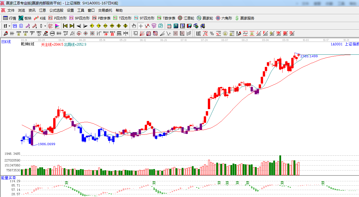 盤面上,早盤海工裝備,農(nóng)業(yè)股,證券等板塊表現(xiàn)活躍,推動(dòng)指數(shù)沖擊前高,午后震蕩整理,臨近收盤,煤炭板塊突然井噴,帶領(lǐng)上證指數(shù)再度攀升,量能方面整體再次放大,技術(shù)面,上方江恩90度阻力猶在,支撐江恩45度2340點(diǎn),此位置向上突破,需有量能配和,預(yù)計(jì)節(jié)前整體以強(qiáng)勢整理為主。