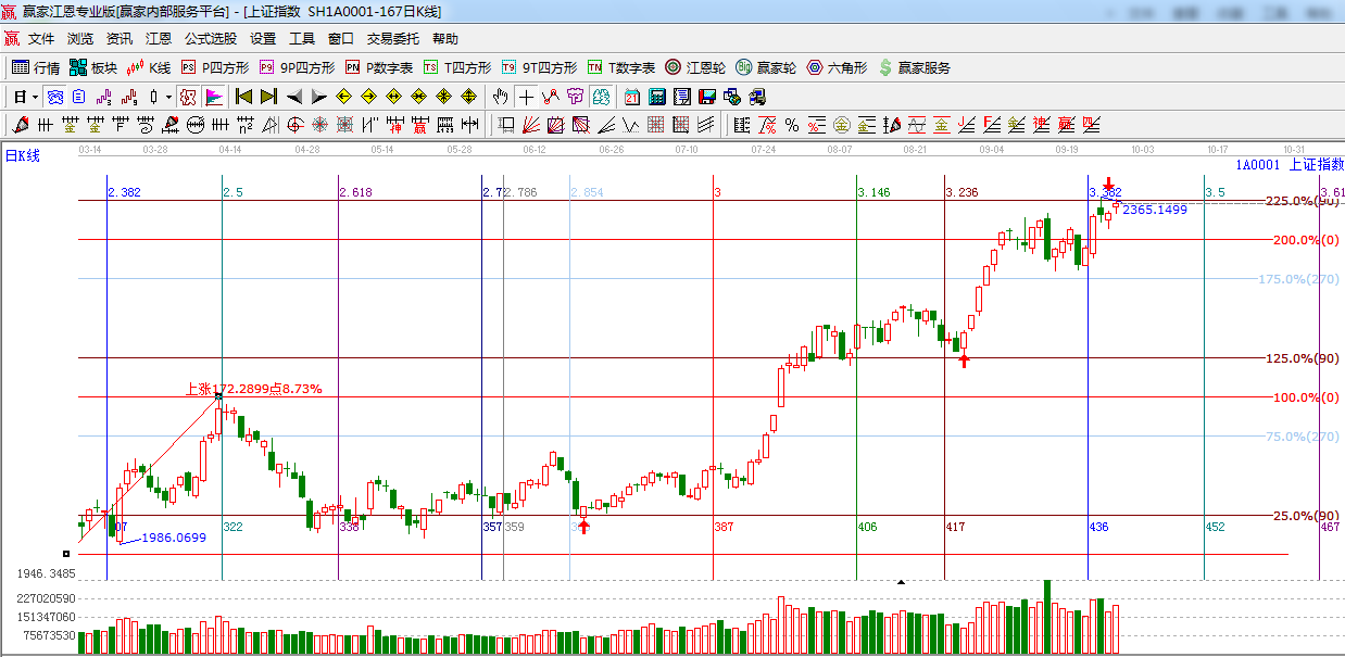 ☆依據(jù)贏家江恩系統(tǒng)黃金時(shí)間周期線提示:下一時(shí)間窗口10月15日。