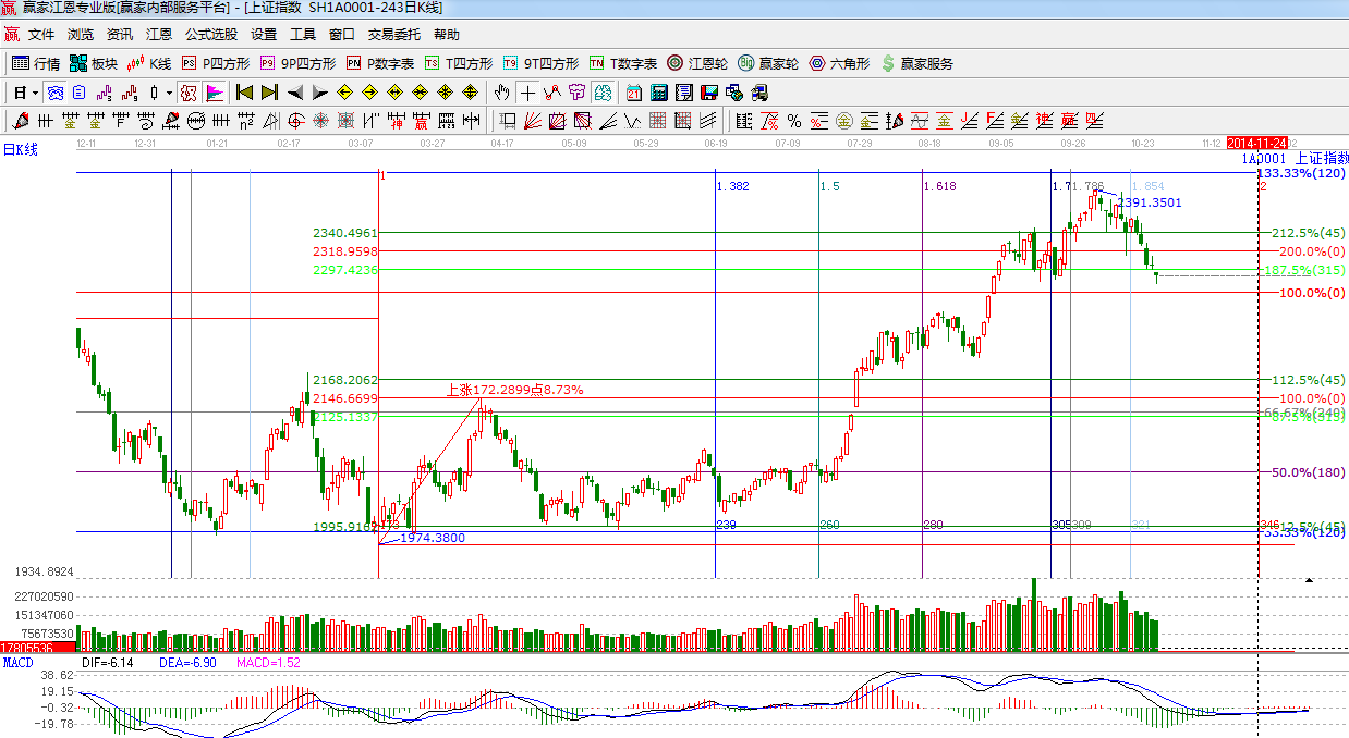 ☆依據(jù)贏家江恩系統(tǒng)極反通道提示:受消息影響,上證指數(shù)低開破位極反通道日線生命線,關注明日生命線爭奪,如能收回短線看多,如不能收回,短期保持謹慎態(tài)度。
