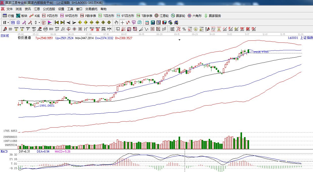 ★依據(jù)贏家江恩系統(tǒng)極反通道提示:收盤破位極反通道藍(lán)色外軌線,短線謹(jǐn)慎看多。