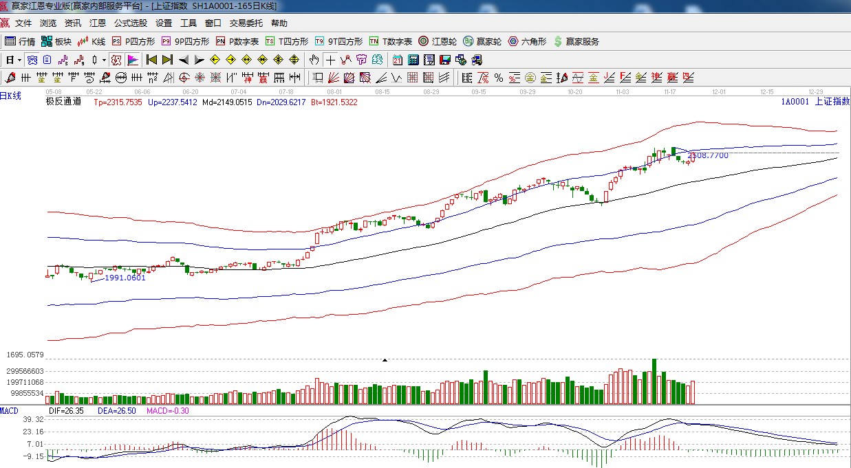 極反通道提示:在權(quán)重的帶領(lǐng)下,日線反抽藍(lán)色外軌線,周一留意外軌線2496點阻力。