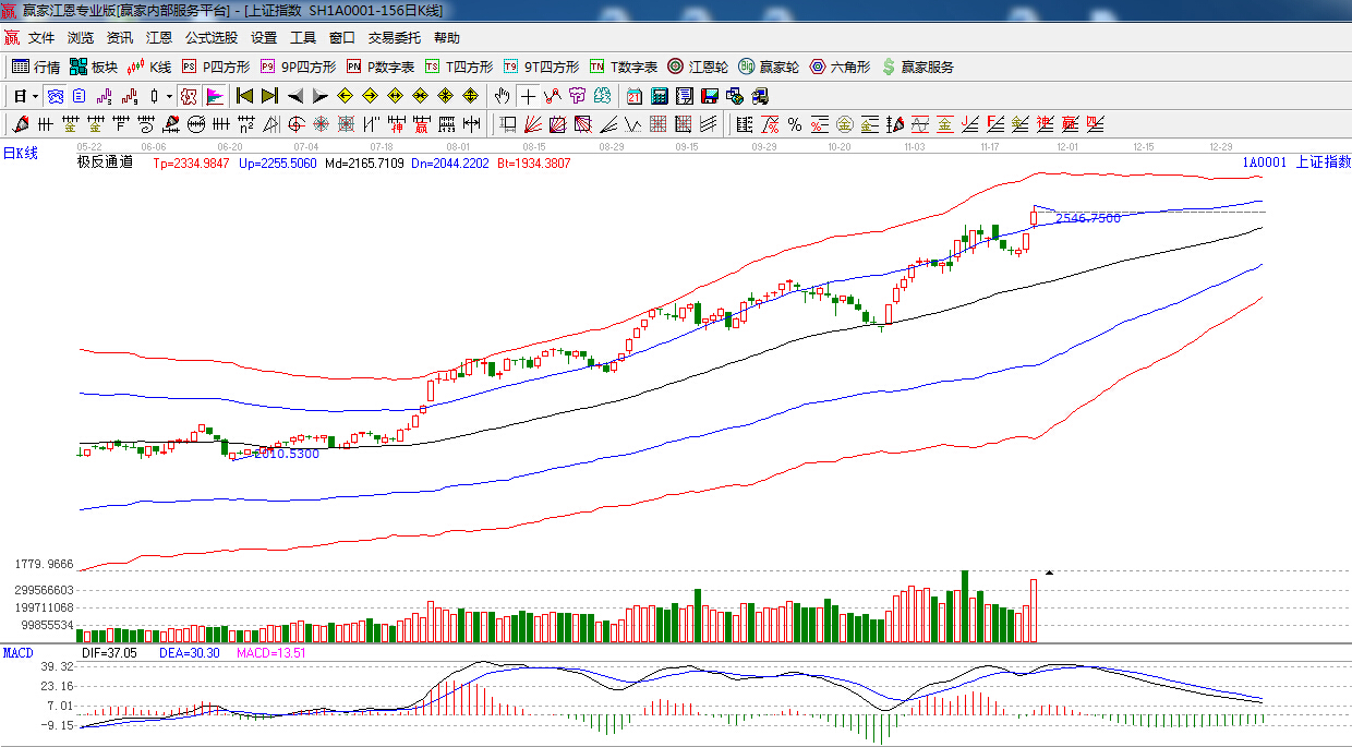 江恩看盤(pán)綜述:依據(jù)贏家江恩技術(shù)工具分析得出:周一兩市受降息的重大利好消息刺激,高開(kāi)高走,強(qiáng)勢(shì)上攻至240度2550阻力附近,昨日是前期提到的時(shí)間之窗,短期留意后期量能跟進(jìn)情況,預(yù)計(jì)明日將在2550點(diǎn)下方高位震蕩為主,短線操作上追漲需要謹(jǐn)慎,留意前期滯漲個(gè)股。