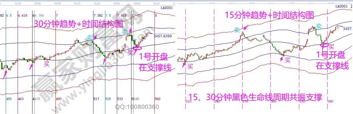 1號滬指再度逼近7月3458高點,突破高點勢在必得。30號上攻日線江恩箱8*1線與極反通道藍色上軌線共振壓力回落,對1號市場分析預(yù)判中談到,60分鐘生命線上運行市場還將延續(xù)反攻,此結(jié)論是從短周期時間結(jié)構(gòu)中推導(dǎo)得出??臻g上學員可以打開工具,通過極反通道查看30、15分鐘K線圖,周期共振信號直觀、清晰可見,在贏家江恩體系中此信號是解決如何確立買賣點,市場流傳一句會買的是徒弟,會賣的是師傅,而該信號不僅解決了買點,更解決了賣點,同時成功率達85%以上,并且信號出現(xiàn)就是空間拐點,是廣大投資者所期望的買在低點賣在高點模式。2號下午3:30將在學員群講解此模式實戰(zhàn)應(yīng)用技巧,聽課方式聯(lián)系贏家工作人員。
