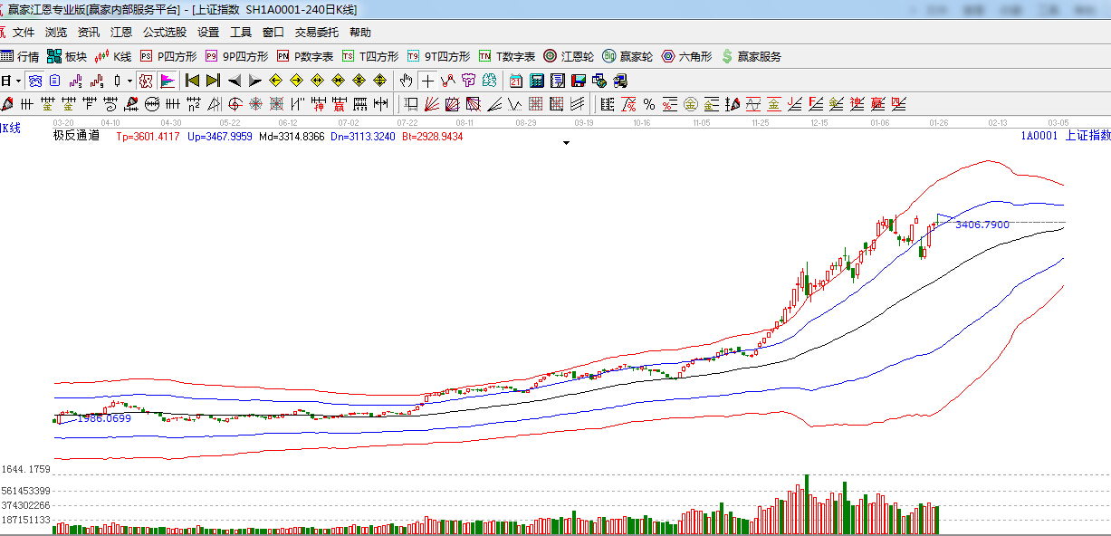 極反通道提示:滬指繼續(xù)圍繞在極反通道藍(lán)色外軌線上方震蕩整理,外軌線支撐3303點(diǎn),此位置不破,看多。