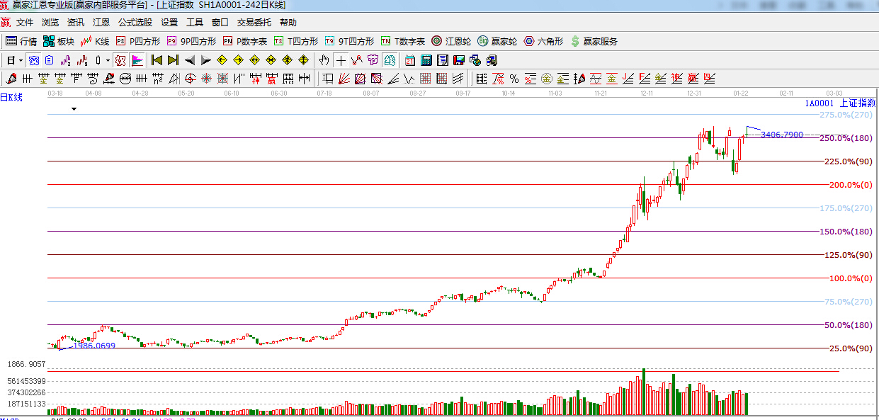 ★依據(jù)贏家江恩理論系統(tǒng)波段百分比提示:滬指圍繞180度之上震蕩,終盤十字星報(bào)收,180度3337點(diǎn)此位置不破繼續(xù)看多,上方目標(biāo)位江恩270度3486點(diǎn),下方的90度支撐3188點(diǎn)。