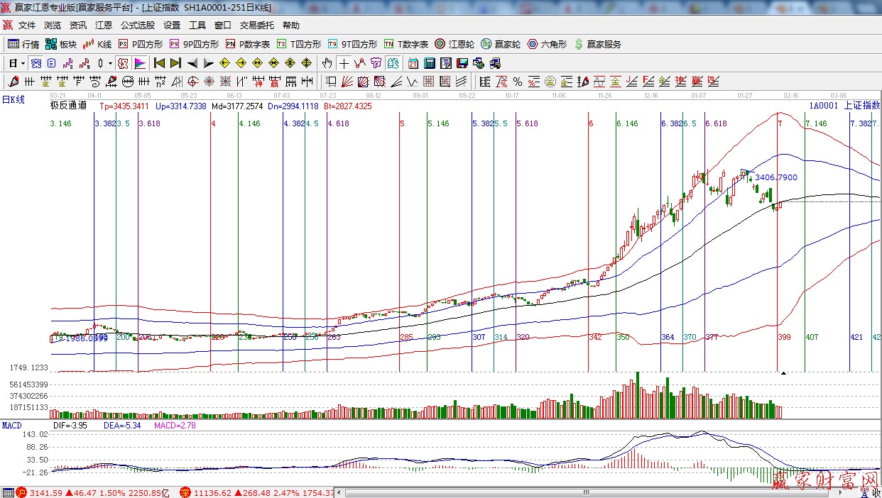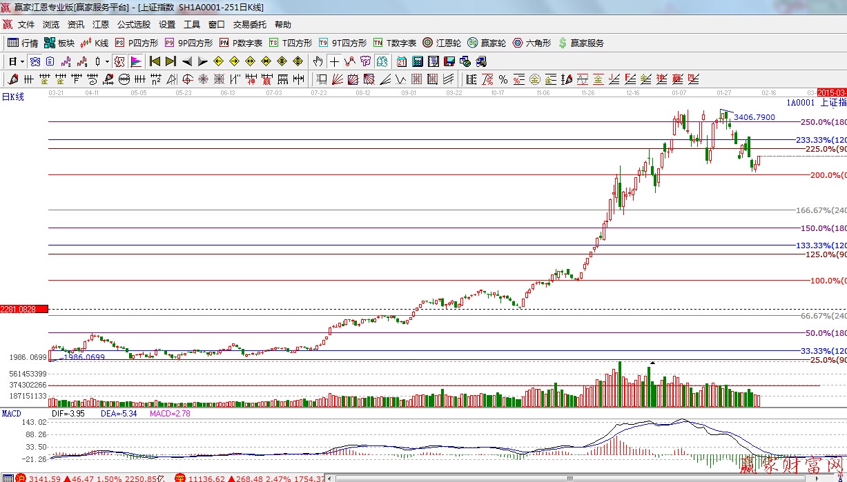 ★依據(jù)贏家江恩理論系統(tǒng)波段百分比提示:江恩百分比0度位置3039點,90度與120度位置是短期反抽的壓力區(qū),與其它指標(biāo)共振。