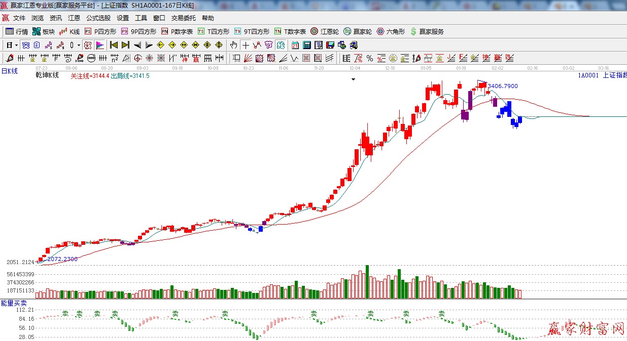 ☆依據(jù)贏家江恩理論系統(tǒng)乾坤K線提示:K線整體處于藍色休息區(qū)域,反抽短期出局線,此線上則短期表示轉(zhuǎn)強,但波段趨勢不改。