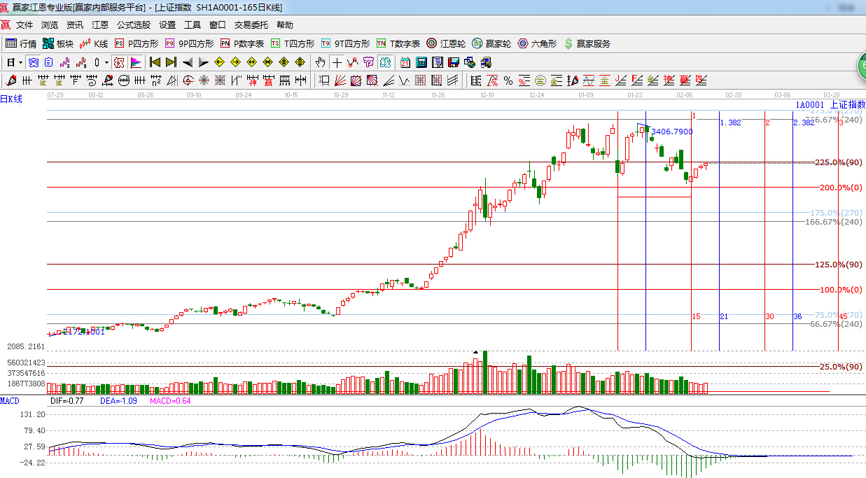 江恩看盤(pán)綜述:依據(jù)贏家江恩技術(shù)工具分析得出:滬指自江恩百分比0度位置3039點(diǎn)附近止跌反彈,近期50ETF期權(quán)即將上市,將對(duì)權(quán)重股走勢(shì)形成支撐。加之新股申購(gòu)已過(guò),所以在春節(jié)前,預(yù)計(jì)這一縮量反彈的局面將延續(xù),下一時(shí)間窗口留意2月17日,操作上,對(duì)于年報(bào)超預(yù)期的個(gè)股,適當(dāng)參與.