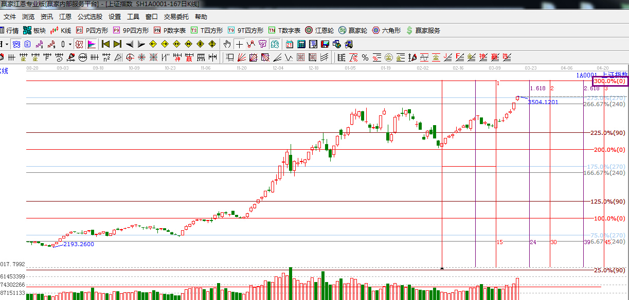江恩理論系統(tǒng)黃金時間周期線提示:16日時間窗口,滬指如期沖關,短期下一時間窗口是 3月23日,3月30日。