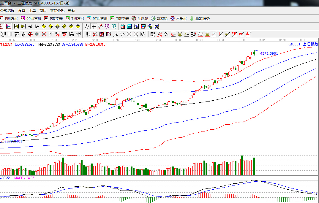 江恩看盤綜述:依據(jù)贏家江恩技術(shù)工具分析得出: 周二滬深兩市震蕩加劇,盤面顯示整體市場分化嚴重,藍籌股相對較強,創(chuàng)業(yè)板出現(xiàn)下跌,在滬指連續(xù)的逼空的情況下,又恰逢五一假期,短期震蕩調(diào)整實屬正常,下方極限位置是江恩180度4300點,震蕩整理之后仍會繼續(xù)向上攻擊江恩270度4700附近。操作上,逢低仍是調(diào)倉以及布局良機,金融股首選銀行、券商;另外,煤炭、有色、電力、化工也可逢低關(guān)注。