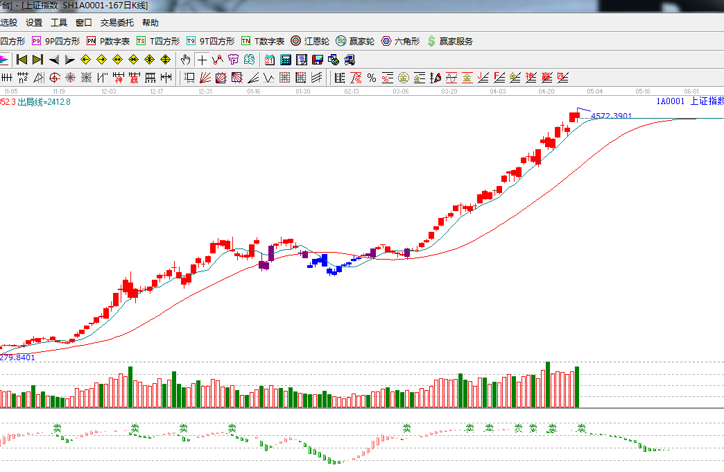 極反通道提示:紅色外軌超強區(qū)域,趨勢強勢,趨勢看多。