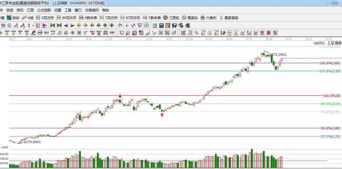 ★依據(jù)贏家江恩理論系統(tǒng)波段百分比提示:滬指如期在江恩135度4088點(diǎn)附近,止跌回升,突破180度4300點(diǎn),180度轉(zhuǎn)換為支撐位置。