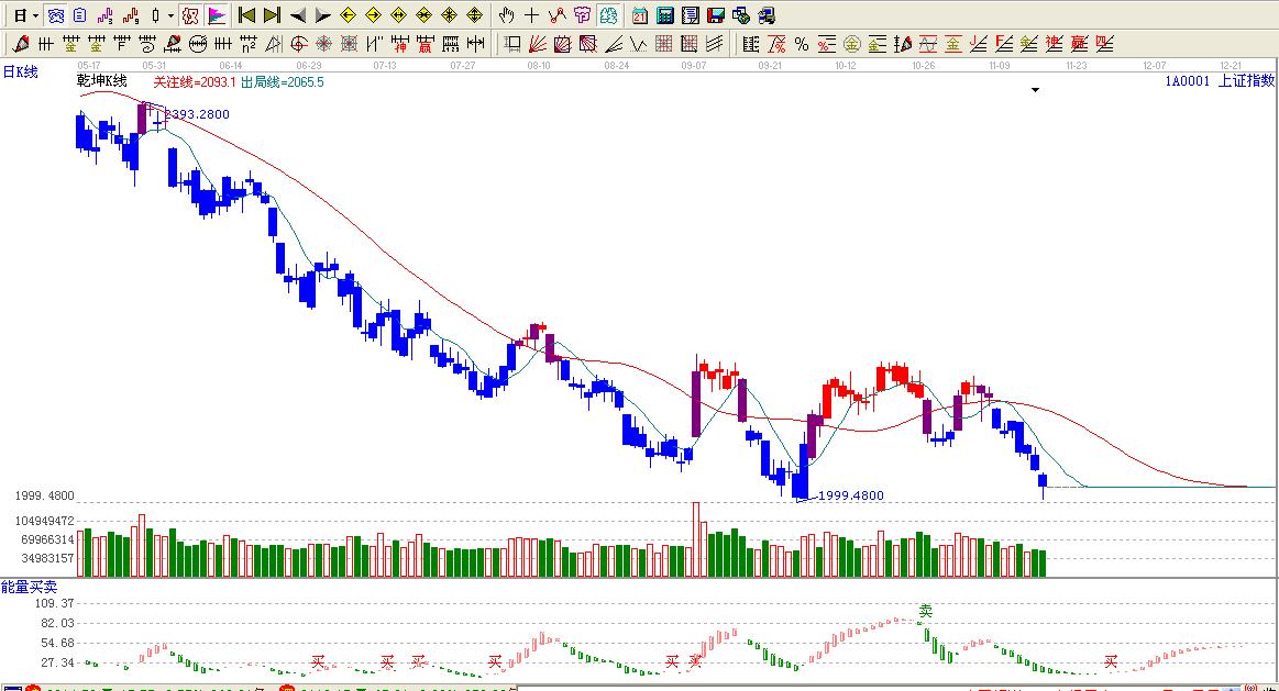 ☆依據(jù)贏家江恩系統(tǒng)乾坤k線提示:大盤處于藍色區(qū)域,多看少做。