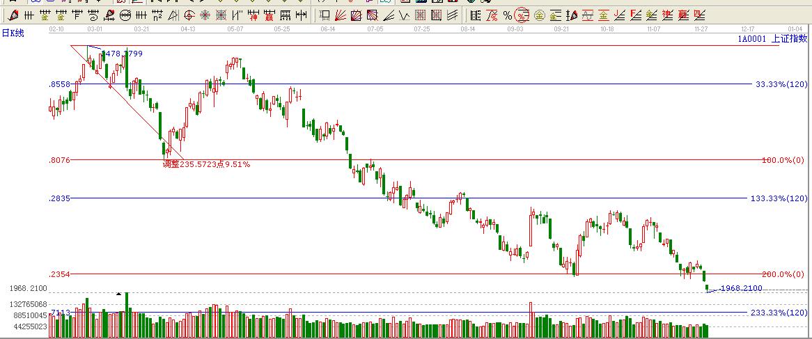 ☆依據(jù)贏家江恩波段百分比延伸線提示:大盤破位0度位置。這里多空分界位置下一支撐在120度位置1928點(diǎn)。0度位置不過(guò)看空。休息