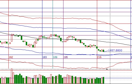 A股周一陰線再創(chuàng)新低,盤中的反抽力度同預(yù)期基本一致反抽到30分鐘外軌附近出現(xiàn)回落,短期盤中震理依然不建議參與,耐心等待K線跌到極反通道弱勢(shì)外軌線附近再操作,支撐1942-1947阻力1970;