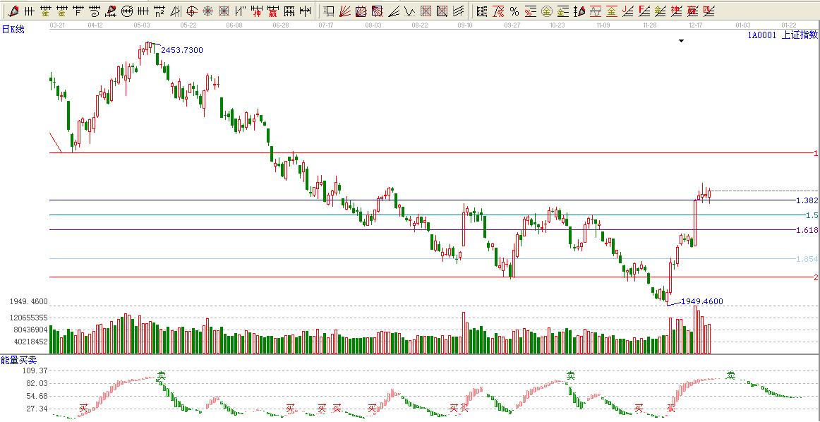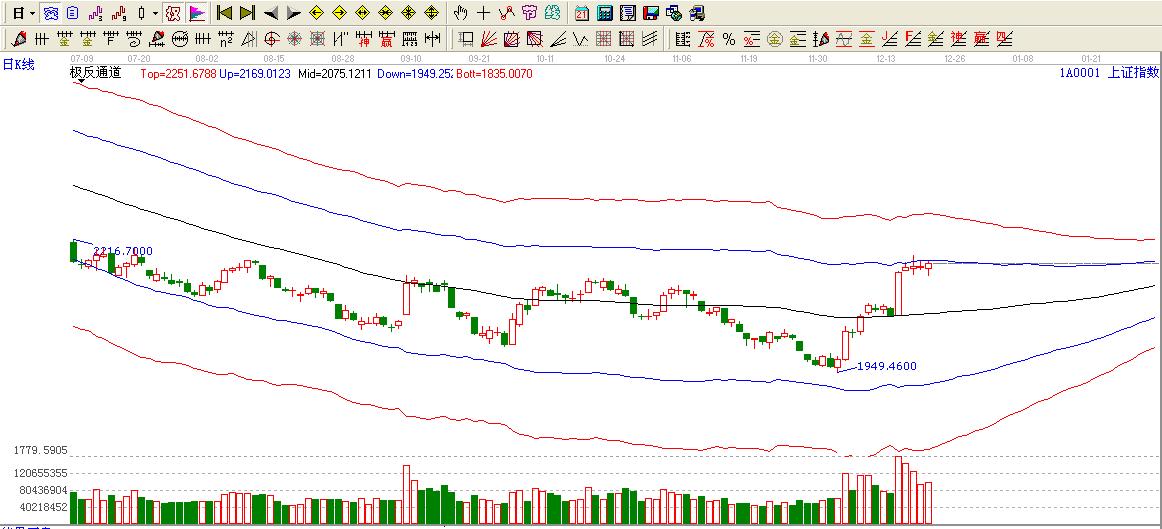 綜上所述:大盤極反通道上軌4次上攻都沒收復(fù),12.21日是重要時(shí)間窗口。極反通道上軌2174位置得失極其重要。紅色上軌位置2240附近。