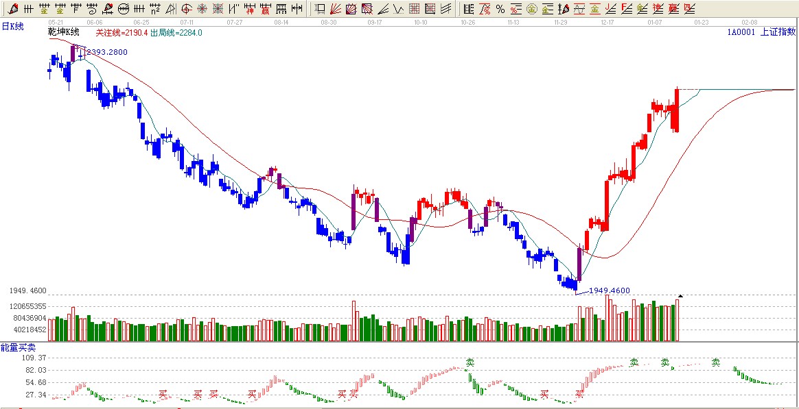 ★依據(jù)贏家乾坤K線提示:大盤在紅色區(qū)間看多做多。