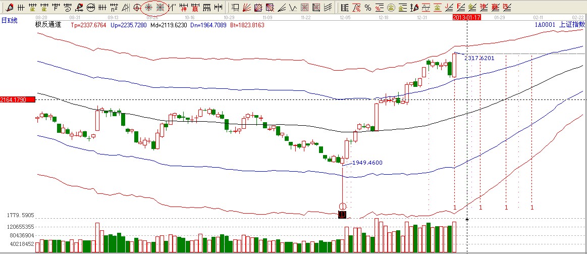 大盤神奇的拉升也再一次的演繹了極反通道的一個神奇之處,極反通道生命線上方一個詞【強勢】應對了應據(jù)極反通道口訣:生命線上強勢走,生命線下難抬頭。截止收盤大盤漲68.74點漲幅3.06%。盤面全面爆發(fā)以62家漲停爆發(fā)了周五的一個空頭,跌幅5個點以上的沒有一家。在一次上演了逼空行情。