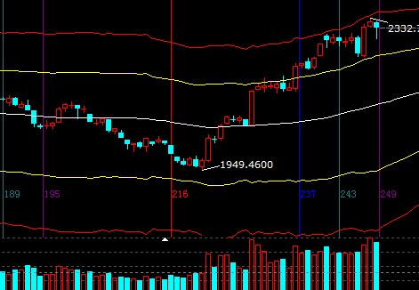 大盤日線紅色外軌線、60、30分鐘外軌線合力形成共振區(qū),此區(qū)間謹慎做多,市場最終將回歸自身運行規(guī)律,依據(jù)規(guī)則失守一線看低一線,所持倉位應不斷提升止損位保護收益,短期支撐2285-2295,外軌線阻力2315-2325;