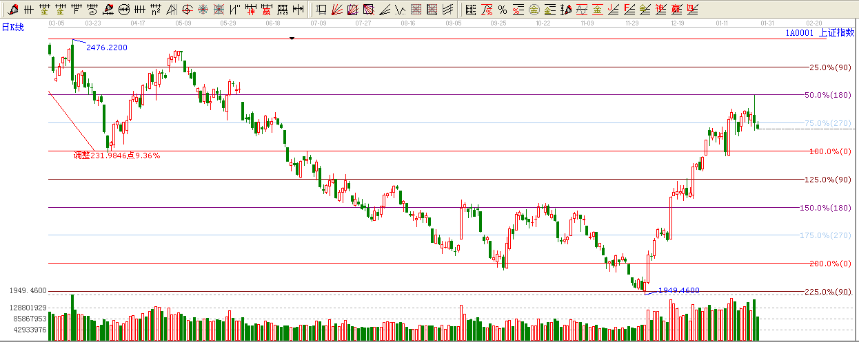 ☆依據(jù)贏家波段百分比伸線提示:大盤270度位置2302壓力,下方支撐0度位置2246點(diǎn)。