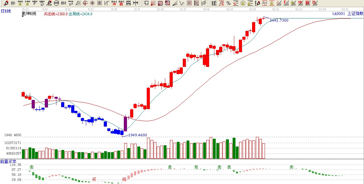 ★依據(jù)贏家乾坤K線提示:大盤在紅色區(qū)間看多做多。