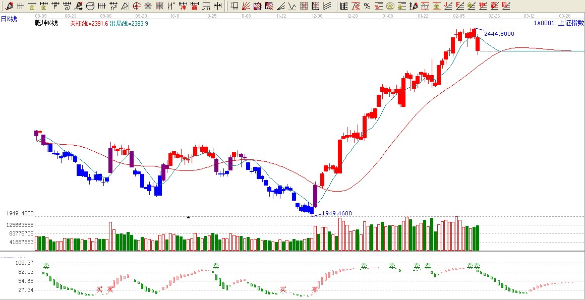 ★依據(jù)贏家乾坤K線提示:大盤在紅色區(qū)間看多做多。