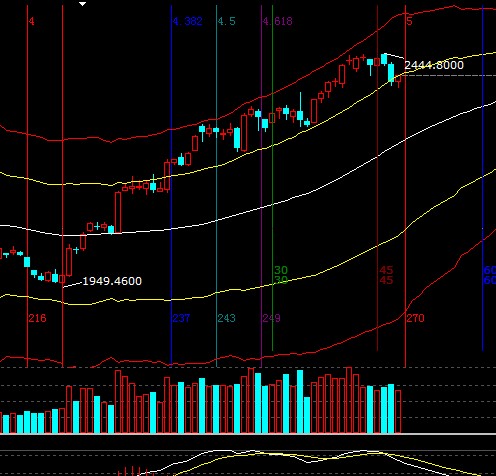 指數(shù)收盤價(jià)正是極反通道外軌線位置,分鐘圖盤中延續(xù)震蕩反抽動作,30分鐘生命線不能收復(fù)近期確認(rèn)展開震蕩下行趨勢,依據(jù)規(guī)則失守一線看低一線,整體趨勢生命線不破做多觀點(diǎn)不變,個(gè)股倉位上做高拋低吸降低成本,短期支撐2358-2367,阻力2400-2408;