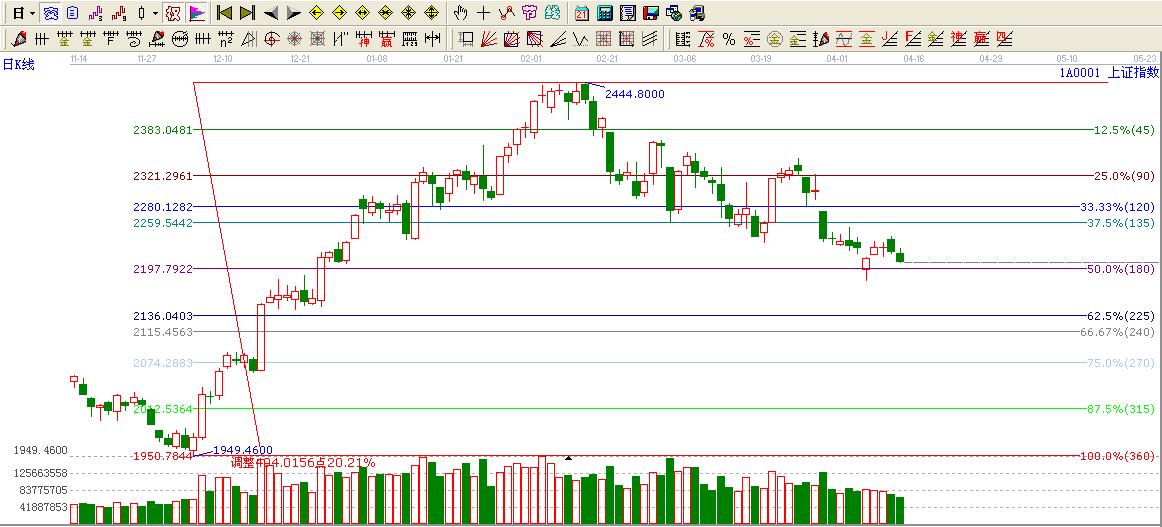 ★依據(jù)贏波段百分比提示:大盤1949.46點(diǎn)至2444.80點(diǎn)回調(diào)目前處于180度位置2197.13點(diǎn)上方,短期再次考驗(yàn)180度位置支撐。