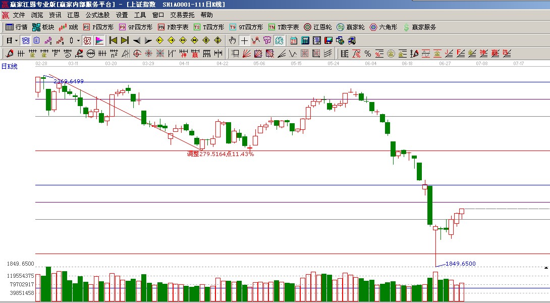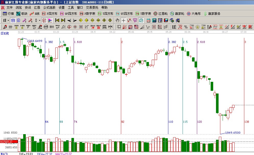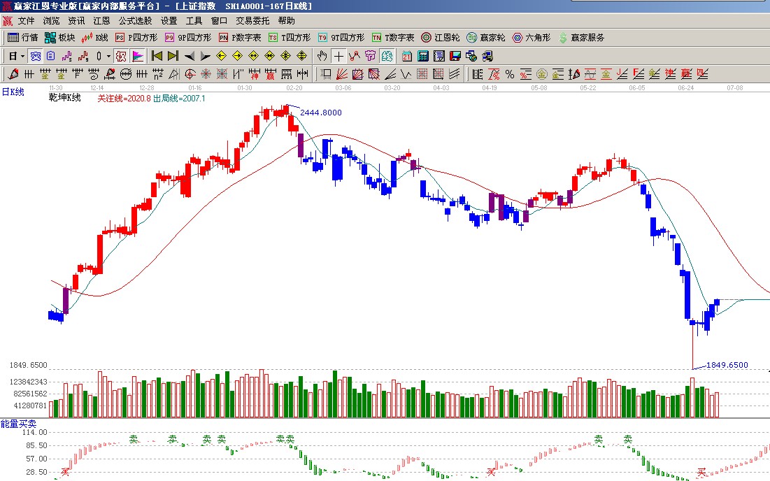 ☆依據(jù)贏家江恩系統(tǒng)乾坤K線提示: 收盤在短期出局線上,下一步將震蕩修復(fù)關(guān)注線隨后是大的方向選擇;(1);