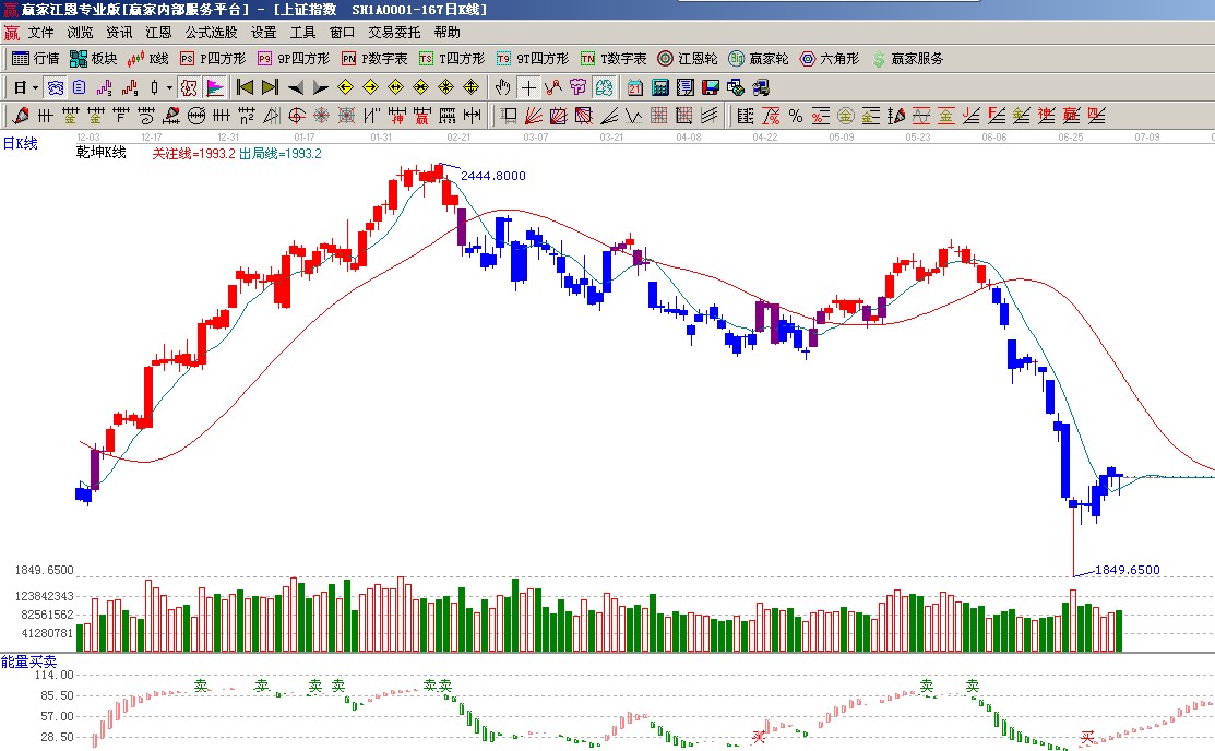 ★依據(jù)贏家江恩系統(tǒng)能量買賣提示:多方占據(jù)優(yōu)勢紅色柱子有延續(xù)動作(1);