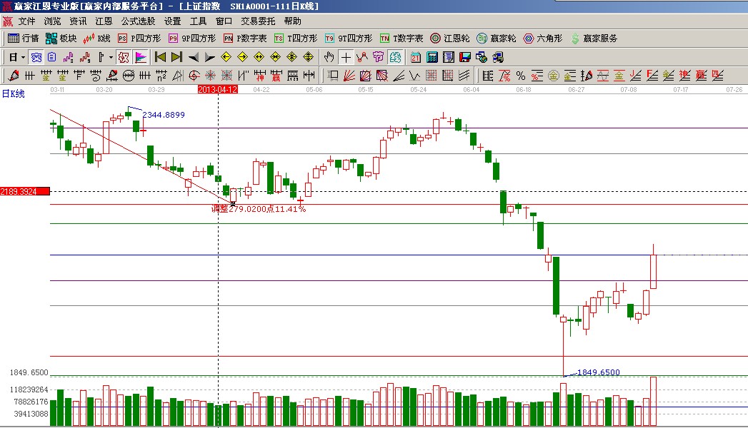 ★依據(jù)贏家江恩系統(tǒng)波段百分比延伸提示:自2478至2242做圖,百分比240度1979為當(dāng)前支撐位,上方阻力是45度的2130點(diǎn)(2);