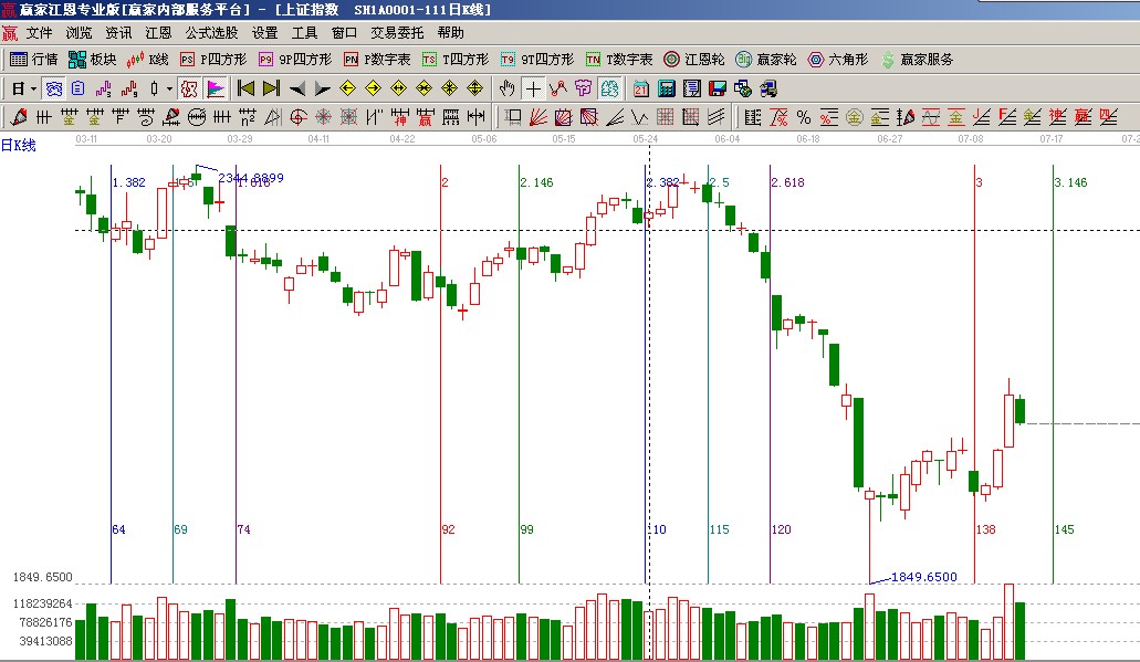 ☆依據(jù)贏家江恩系統(tǒng)極反通道提示:調(diào)整時觀察短周期生命線得失,不破15、30震蕩后還會上沖,失守則確認外軌線;