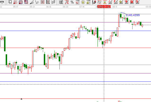 9月開門不佳延續(xù)弱勢(shì)震蕩態(tài)勢(shì),權(quán)重股與題材股輪番表現(xiàn)但持續(xù)時(shí)間均不長,護(hù)盤與造勢(shì)的目的未達(dá)成,2號(hào)保險(xiǎn)、券商兩大金融權(quán)重領(lǐng)漲,煤炭、地產(chǎn)、有色小漲;概念題材除小部分次新股強(qiáng)勢(shì)外無亮點(diǎn),螞蟻金服、萬達(dá)私有化微漲,衛(wèi)星導(dǎo)航、免疫治療、物聯(lián)網(wǎng)、鋰電池跌幅居前,中報(bào)高送轉(zhuǎn)概念分化嚴(yán)重,個(gè)股跌多漲少成交量較前日持平。技術(shù)方面日內(nèi)時(shí)間窗為5號(hào)尾盤半個(gè)小時(shí)或6號(hào)早盤,短周期15、30、60分鐘在生命線以下弱勢(shì)區(qū)域,日線離生命線支撐空間在30個(gè)點(diǎn)左右,綜合判斷滬指回探震蕩中不破日線生命線繼續(xù)看好未來走勢(shì),整體倉位保持在5成,回探中結(jié)合所持個(gè)股情況決策是否用2成活動(dòng)倉來做差價(jià),3043、3035為日內(nèi)支撐,3082、3093為日內(nèi)阻力,僅供參考,不構(gòu)成任何投資建議。