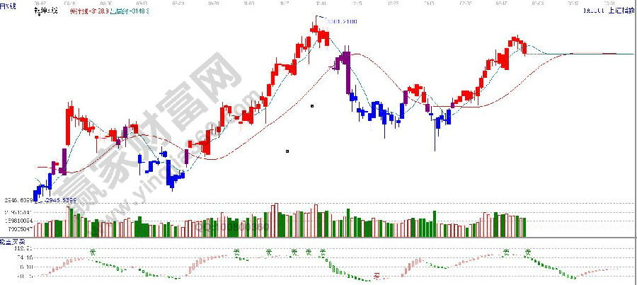 ★依據(jù)贏家江恩理論系統(tǒng)乾坤K線提示:紅色K線,破位藍(lán)色出局線,依據(jù)規(guī)則,短空波段多