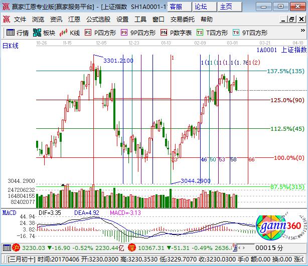 周四大盤(pán)高開(kāi)低走呈現(xiàn)中陰下跌0.52%,幾大指數(shù)全線下跌,創(chuàng)業(yè)板下跌0.6%。板塊普跌,釀酒勉強(qiáng)收紅,銀行和有色微跌,保險(xiǎn)領(lǐng)跌權(quán)重;題材方面,草甘膦、次新領(lǐng)漲,快遞、一帶一路、央企改革領(lǐng)跌,個(gè)股下跌居多。技術(shù)方面,自滬指運(yùn)行至極反通道外軌線,早盤(pán)分析中提出按工具規(guī)則此位置應(yīng)將高收益?zhèn)€股獲利了結(jié),此線一舉突破的概率較小,因此震蕩回落將是主基調(diào),而下方的空間也是可預(yù)見(jiàn)的,江恩百分比90度、生命線位置一目了然,因此波段減倉(cāng)的籌碼只需等待價(jià)位到達(dá)后擇機(jī)回補(bǔ)即可,3213、3204為日內(nèi)支撐,3241、3255為日內(nèi)阻力,僅供參考,不構(gòu)成任何投資建議。