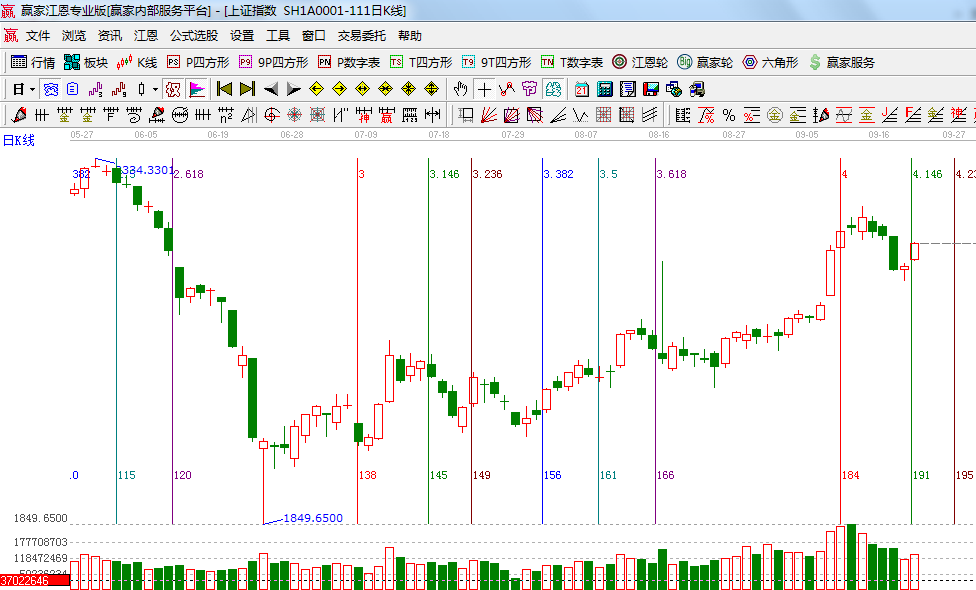 ★依據(jù)贏家江恩系統(tǒng)乾坤K線提示:K線反抽短期出局線,明日展開爭(zhēng)奪戰(zhàn);(1)