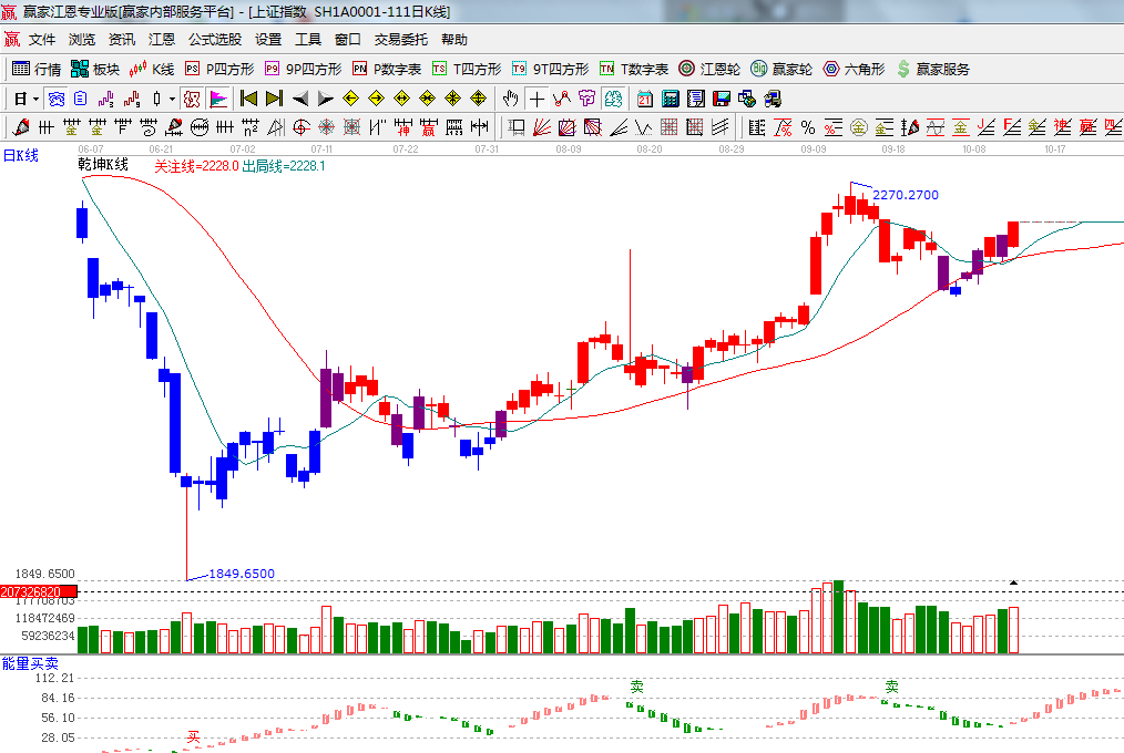 ★依據(jù)贏家江恩系統(tǒng)能量買賣提示:出現(xiàn)第一根紅色柱子,謹(jǐn)慎看多;