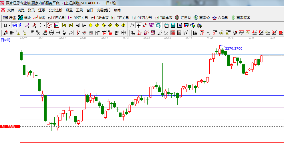 ☆依據(jù)贏家江恩系統(tǒng)波段百分比延伸提示:240-270度位置是2232-2255;
