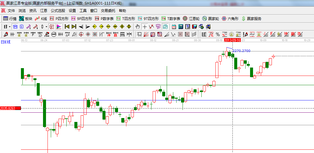 指數(shù)明天進(jìn)入日線時(shí)間窗,依據(jù)贏家江恩系統(tǒng)極反通道工具規(guī)則外軌線是當(dāng)前行情上漲的阻力,近期有望制約行情向上發(fā)展,波段思路可選擇高拋一些倉位等待回落低聽,短線上操作節(jié)奏可適當(dāng)放緩,等真正信號(hào)出來后在休息,為了更好的生存時(shí)刻全面分析做計(jì)劃,市場如突破外軌以震蕩的方向上攻則持股;