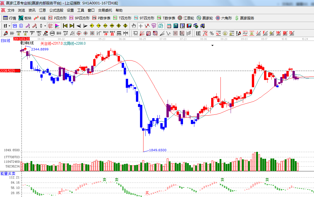 ★依據(jù)贏家江恩系統(tǒng)能量買賣提示:紅色柱子變成綠色,空方占據(jù)優(yōu)勢(shì);