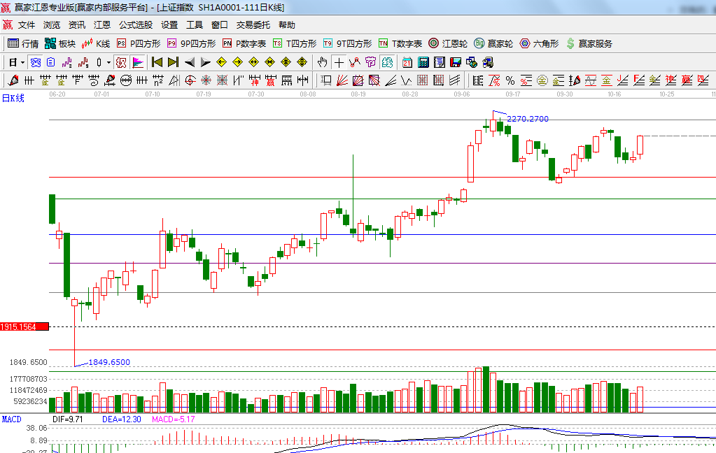 ☆依據(jù)贏家江恩系統(tǒng)極反通道提示:120分鐘獲得生命線支撐后持續(xù)上攻,盤中重點(diǎn)觀察2235-2250區(qū)間指數(shù)上攻方式,強(qiáng)則后期回調(diào)力度弱,上攻態(tài)勢弱則回調(diào)力度則深;