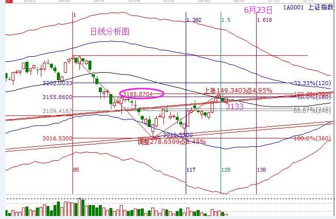今日點位及時間: 大盤今日支撐3131,壓力3166-80,日內(nèi)時間窗口關(guān)注上午9點45分和10點半,日線級別下個時間窗口關(guān)注6月23日。