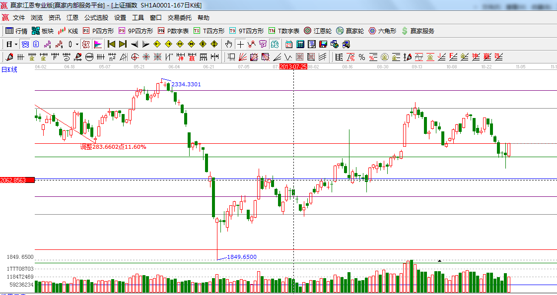 ★依據(jù)贏家江恩系統(tǒng)波段百分比延伸提示:江恩百分比0度是2160;