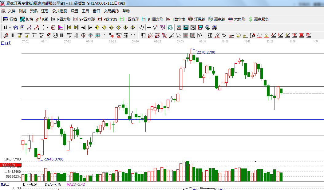 ★依據(jù)贏家江恩系統(tǒng)波段百分比延伸提示:江恩百分比0度是2160,45度位置是2125點(diǎn);