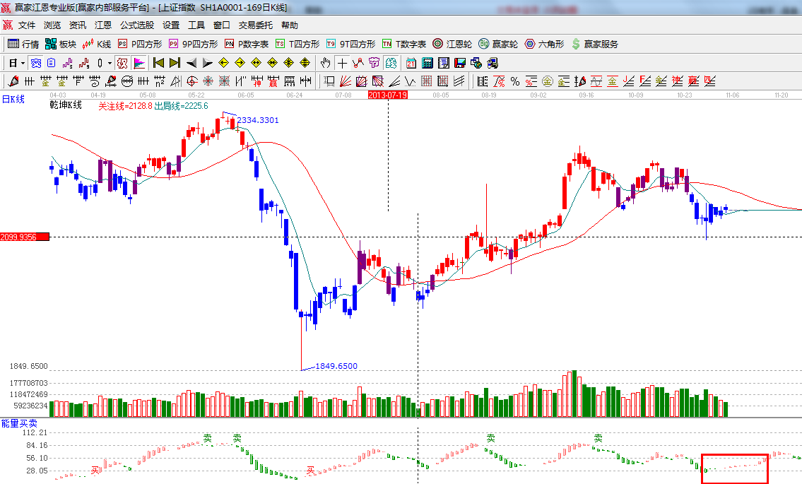 ☆依據贏家江恩系統(tǒng)能量買賣提示:多空轉換節(jié)點位置,有翻紅的跡象,等待信號的確認;