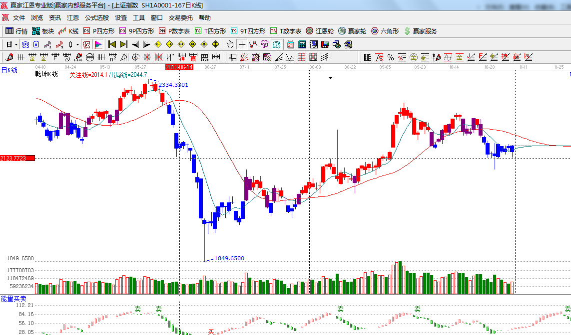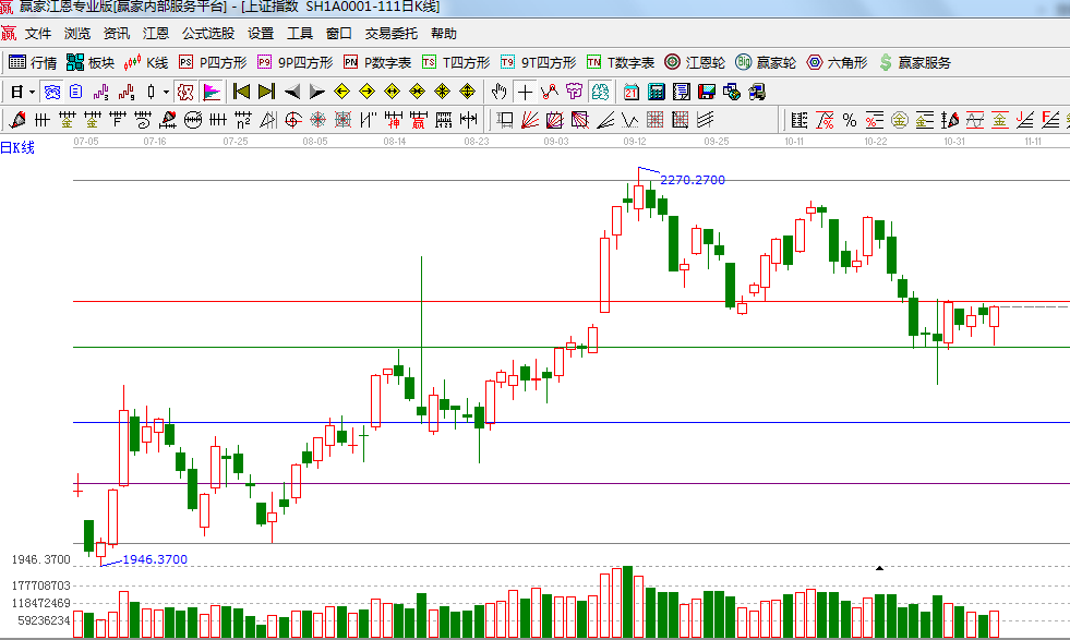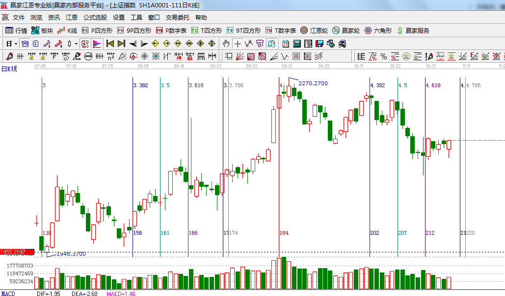 ☆依據(jù)贏家江恩系統(tǒng)波段百分比延伸提示:江恩理論百分比45度位置是2125點(diǎn),江恩百分比0度是2160;