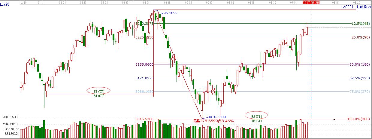 周一,滬指縮量上行,滬指今日最高3261點,基本到達極反通道藍色阻力線,并且短周期上有背離現(xiàn)象,一旦形成共振,短期隨時有回踩的可能??臻g上應(yīng)該不大,支撐留意3220點,3206點附近。操作上,可適當逢高減持近期累計漲幅較大的品種,關(guān)注業(yè)績預(yù)期良好的、下跌之后底部有放量的個股。
