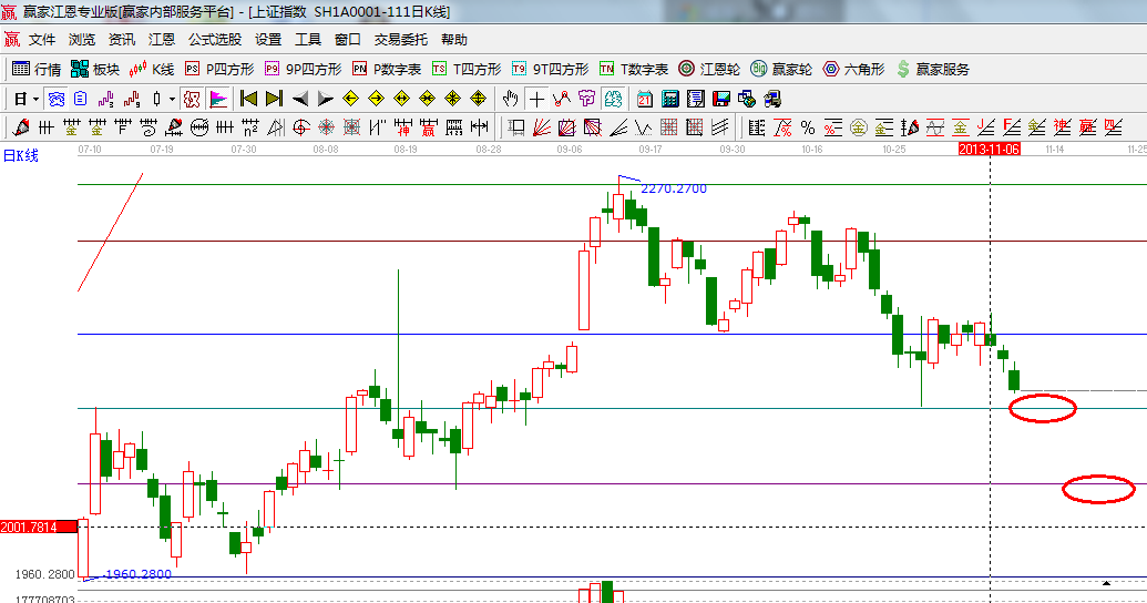 指數(shù)遇到黃金分割周期線所分析的時(shí)間窗后選擇下行,十幾天的縮量橫盤小平臺(tái)宣告失敗,那么價(jià)格上通過極反通道與江恩百分比得出在2050附近,本周日線的時(shí)間窗是13號(hào),整體趨勢(shì)、均線系統(tǒng)、MACD指標(biāo)都在弱勢(shì)區(qū)域,操作思路上則以空倉(cāng)休息或輕倉(cāng)持股為主,操作時(shí)所挑選品種圍繞改革涉及到的行業(yè)為主或有事件推動(dòng)因素的概念股;